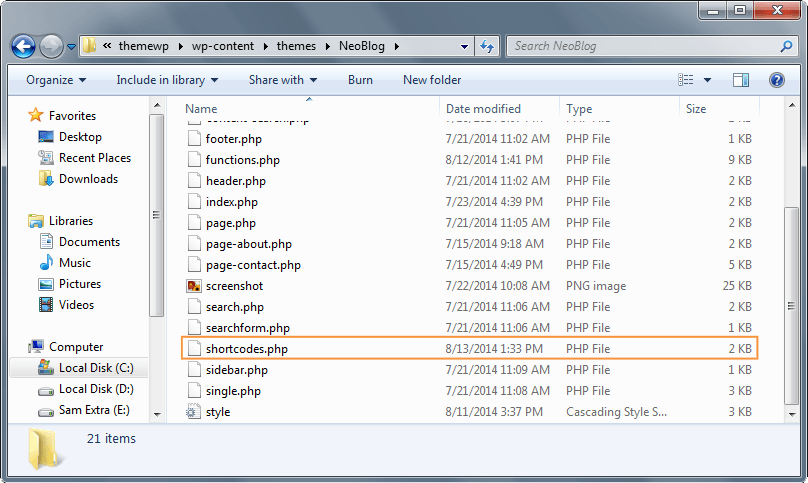 Go ahead and create shortcode.php file on your theme’s root directory.