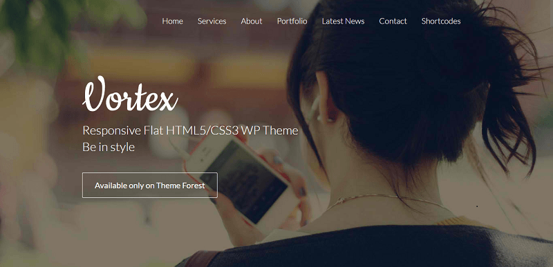 Vortex is a flat-metro WordPress theme perfect for making a portfolio page, a personal blog, or a corporate website. This is a well-thought out one-page parallax WordPress theme with a smooth parallax scrolling effect that complements its smooth and modern layout. It a fully customizable theme which allows you to customize each section according to your preferences.