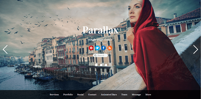 This single page theme wins through lovely animations and beautiful design coupled with amazing features which include amazing features, such as custom header for each page and scrolling effect. There is also an infinite scroll option which allows you to load numerous posts in your blog. Another great feature is its expandable portfolio which enables you to showcase multiple images per portfolio item. On top of that, Parallax has six custom widgets where you can display your social media photos, posts, and more.