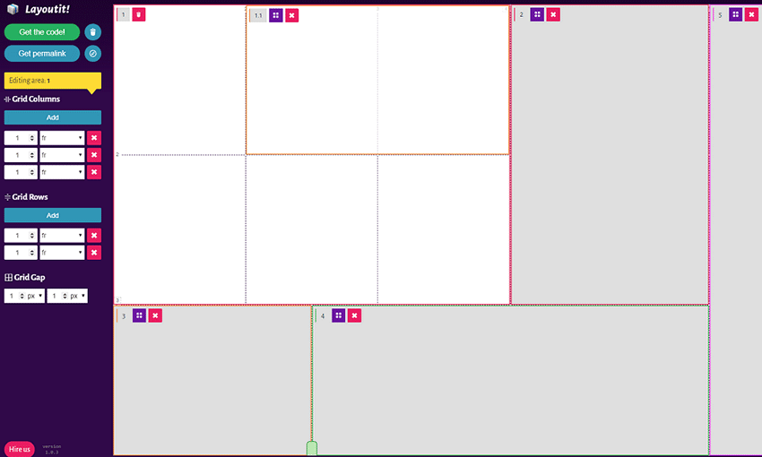One of the most flexible CSS layout generators out there, cssgr.id presents you with plenty of options to get started. There are five starter layouts to begin with, and you can add as many items, columns, and rows as you want. There’s even a placeholder text option so you can see how this layout will look in action.