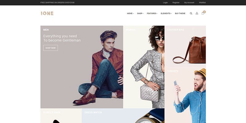 iOne offers a variety of slick home page layouts and some outstanding navigational functionality. Vertical mega menus (via the included Clever Mega Menus plugin) are great for shops with lots of categories. The AJAX powered shopping cart means that customers don’t have to leave the current page when adding an item to their cart.