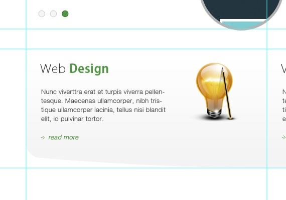 In slider area let’s decrease the height of the container to 250px and change the width of .info to 524px.