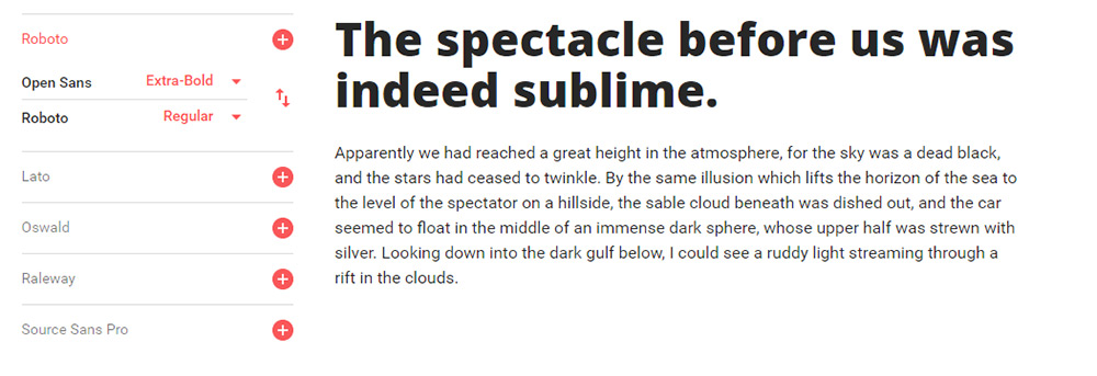 A much thicker serif alternative is Merriweather which I also like as a body font. This versatile typeface really looks great anywhere on your site and it’ll bring plenty of attention to your headers.