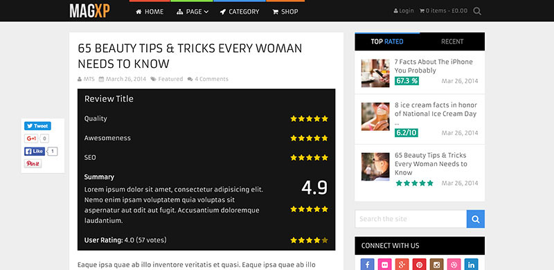 As the name suggests, SociallyViral is designed to increase your social shares and make your content viral. This is made possible through features, such as full social integration, subscription box, and 4 different types of loading effects. It is also AdSense optimized which enables you to see higher CPCs and RFMs.