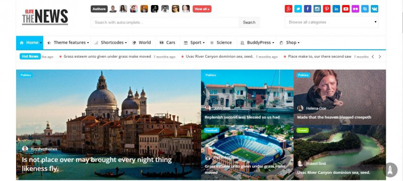 EliteNews Magazine WordPress theme offers full width boxed layout, different header variants, built-in sticky sidebars, a switchable category with pagination, 16 category layouts with 2 different sliders for each category, and 9 different posts layouts. Your online magazine will surely look great with this theme!